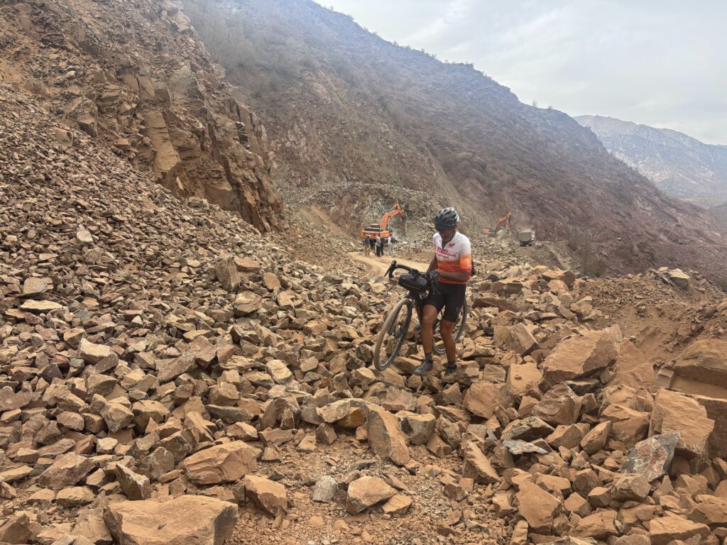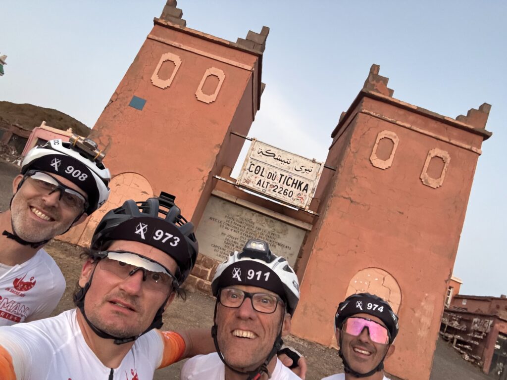 Christian, victime de sérieux coups de chaud, décide courageusement de s’arrêter après nous avoir accompagnés jusqu’à Boumalne Dades (km 336). Un choix difficile plein de sens, mais qui nous serre le cœur 💔.