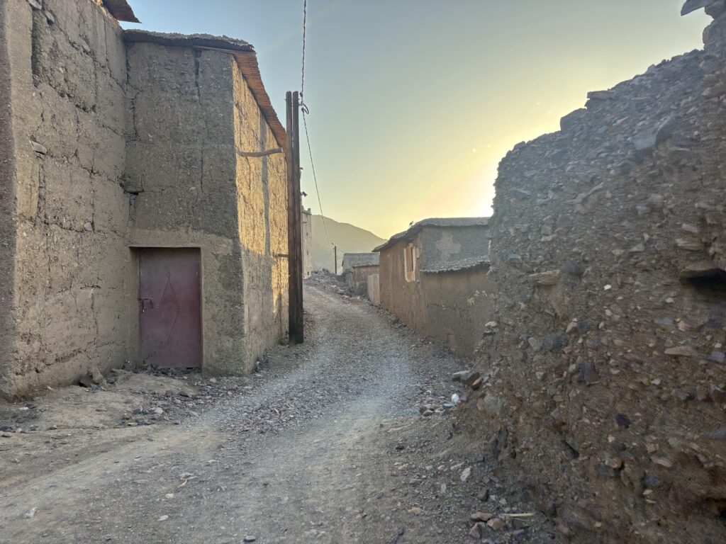 Un peu avant l’aube, épuisés, nous improvisons une sieste sous un porche. Au matin, nous découvrons un village très pauvre, qui met en évidence le fossé entre nos conditions de vie 🥺.