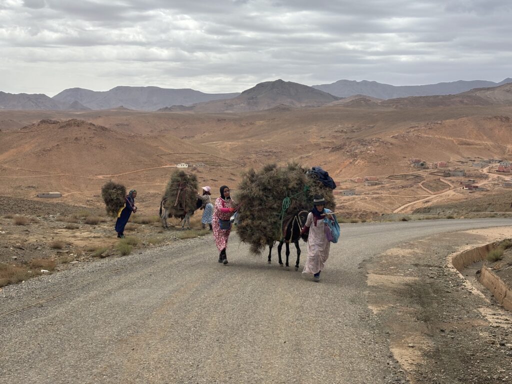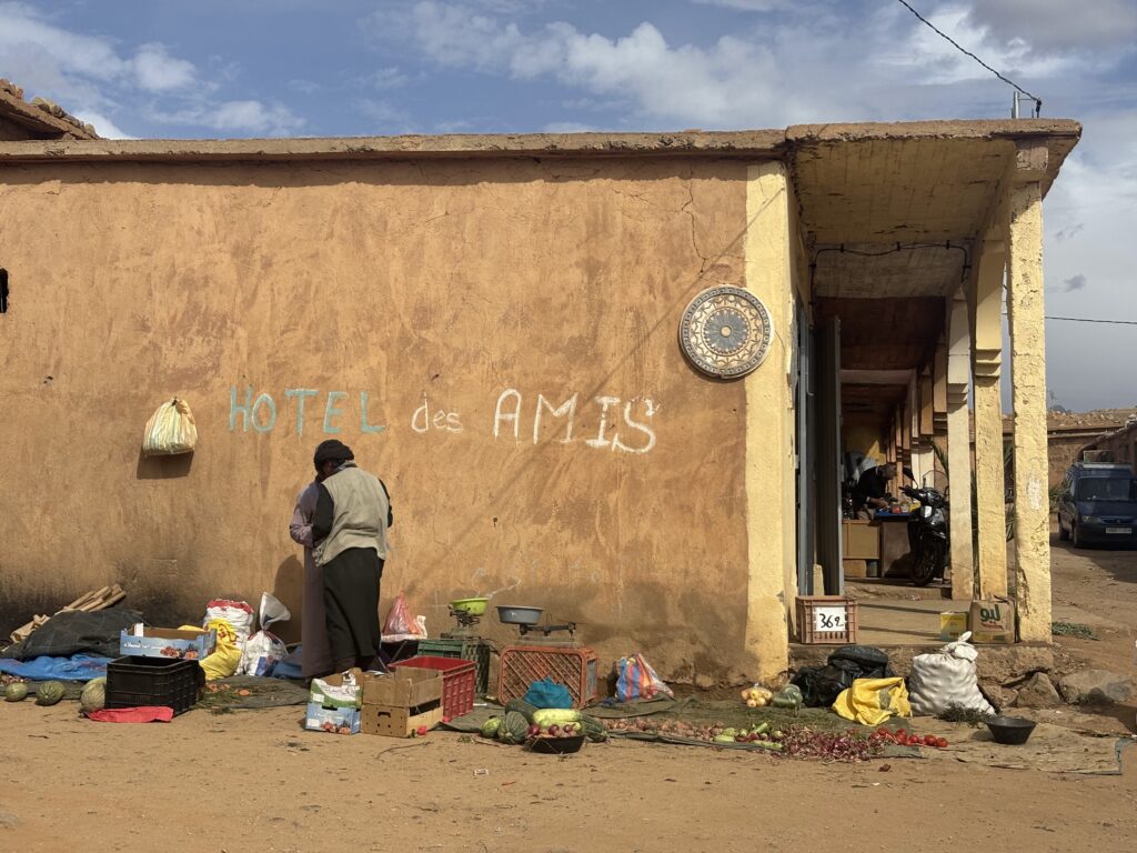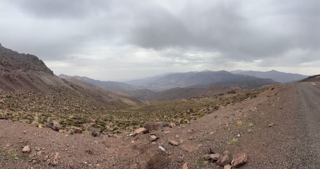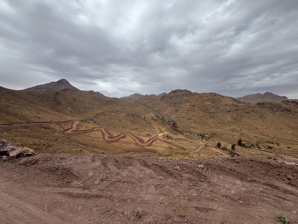 En fin de journée, nous franchissons le mythique col du Tizi-N-Tichka avant de pousser encore quelques kilomètres. À l’auberge : un bon repas, une douche bienvenue… mais une nuit agitée. Les chiens errants nous offrent un concert peu reposant 🐕🎶.