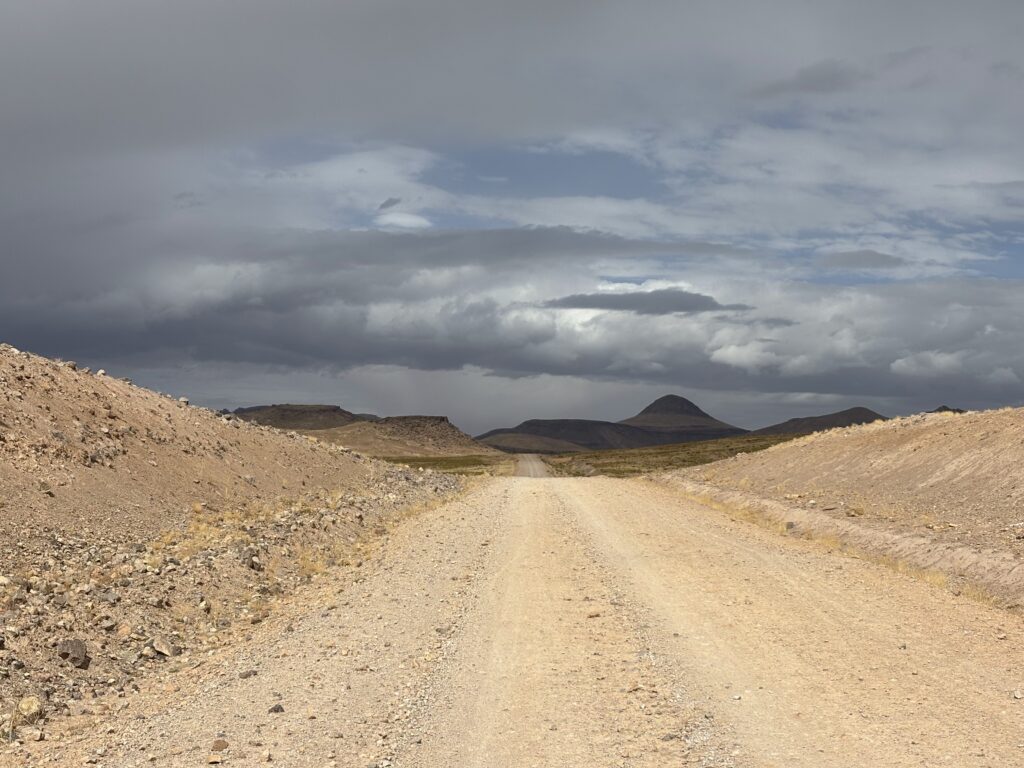 Départ à 3h pour une longue portion de route monotone de nuit, ponctuée de gués remplis par l’orage – jusqu’à 20 cm d’eau ⛈️.